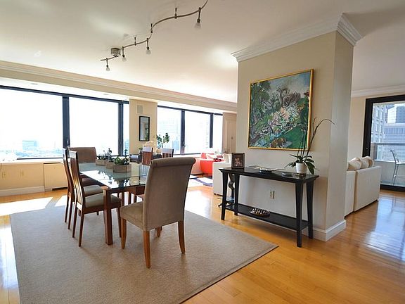 Gorgeous Harbor Towers unit on 27th floor with stunning views of both the Boston Harbor and the city. Modern and updated kitchen with stainless appliances, granite counters and breakfast bar. Fabulous dining and living room with a wall of windows is perfect for entertaining. Master suite features walk-in closet and en suite bathroom. Second bedroom currently used as an office space. Second full bath and half bath are also updated. Plenty of closet space throughout. Private pool and sun-deck area with picnic area and grills. Full service building with 24-hour doorman, concierge services, laundry facilities and on-site professional management. Garage parking available to rent. Move in just in time to enjoy summer on the Boston Waterfront.
