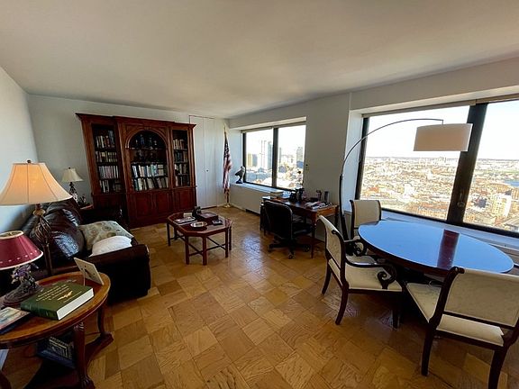 Few homes can match the amazing views from this beautifully renovated one bedroom home at Harbor Towers! Located on the 38th floor. Formal entry foyer with two closets. Spacious living/dining room with oversized windows and amazing water and city views!!! Beautifully renovated kitchen with SubZero refrigerator, granite counters, tumbled marble backsplash and gas cooking. The large bedroom has double French doors open to the living room, oversized windows and fantastic views! The bathroom has marble tiled floors, cherry vanity with black granite counter and glass enclosed marble shower. Great storage space. All closets fitted out with California Closets. Harbor Towers amenities include 24 concierge, outdoor pool, common yard, security and rental parking. Condo fee includes heat, ac & gas cooking.