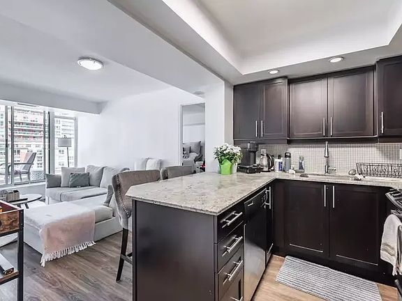 Welcome to The King West Condominium in Toronto's vibrant Liberty Village! This sought-after 2-bedroom suite offers a bright and spacious living experience with a very functional split layout. Enjoy 9' ceilings, premium laminate flooring, and a gas fireplace. Step onto the balcony for clear city views. The chef's kitchen features quartz counters, a backsplash, and a pantry. Explore nearby shops, cafes, restaurants, and the Lake Ontario waterfront. Amenities include an indoor pool, gym, bowling, virtual golf, theatre, party room, guest suites, and 24-hour concierge. Embrace urban living in this dynamic neighborhood!Extras: S/S Fridge, S/S Stove/Over The Range Microwave, S/S Dishwasher, Washer & Dryer. Window Coverings. Unit Has Recently Been Professionally Painted, New Flooring Throughout, New Washer & Dryer.Inclusions: 1 Parking Spot and 1 Locker Included.Available Oct. 1