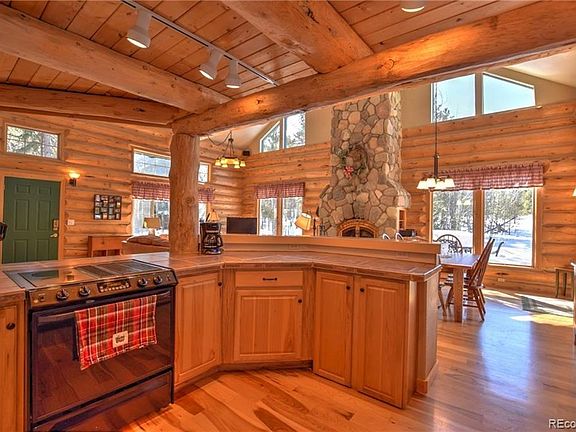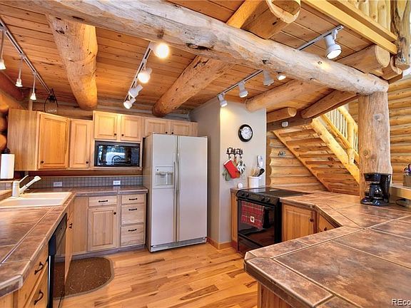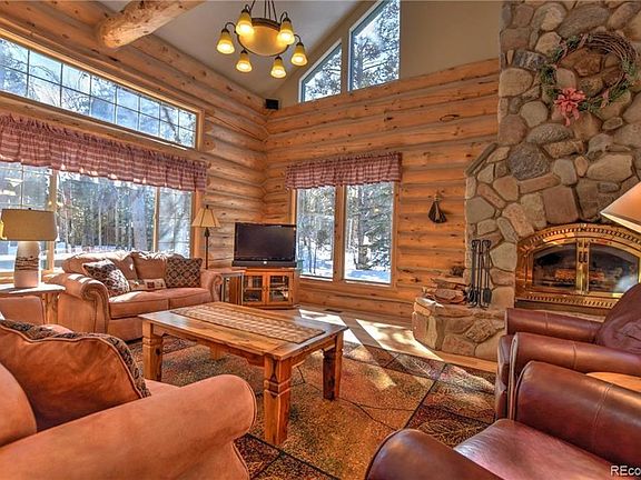 Log home on Cul-de-sac cornering National Forest!! Over 2 acres of private pines & aspens that backs into a huge property to the west. Hand crafted Logs, over-sized deck with covered section, seasonal creek w/boardwalk. Inside is custom with massive windows, NEW hardwood floors, vaulted ceilings, Floor to Ceiling Rock fireplace, 4 BDRMS & 2 BA. Garage has 2 stories with the upper level finished & heated, excellent game room. Don't miss this amazing home all located 30 min from BRECK!!