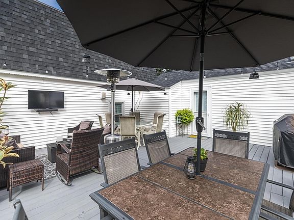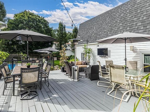 Nestled on a stunning corner lot, this meticulously maintained home offers a blend of beautiful landscaping and modern comforts, including an in-ground pool and a private fenced-in yard. Step through the inviting porch entry into a kitchen adorned with cathedral ceilings, abundant natural light, and a central island. Host gatherings in the spacious dining room, and relax in the living room complete with a charming bay window. The first floor also conveniently holds a bedroom, a full bath, and a laundry room. Upstairs, discover a half bath and three additional bedrooms, all recently updated for contemporary appeal. Above the attached garage, an oversized entertainment room awaits, complete with a gas stove and a deck offering panoramic views of the lush backyard. This home includes an attached garage for added convenience, complemented by recent upgrades such as a newer roof, boiler, and updated pool line and filter. Schedule a tour today and discover your sanctuary!