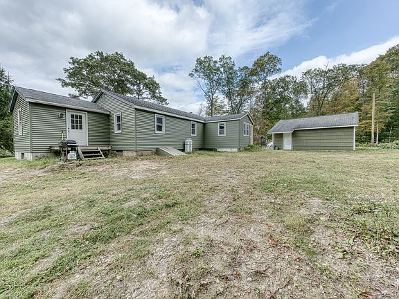 One level living with many nice features. Ranch style home on a nice, ready to make yours many places for gardens. One car detached garage with area for workshop. Walk into the family room with new flooring opens into kitchen and dining area. Kitchen is large with newer cabinets offering lots of storage. Eat in dining area offers lots of space for large table. Living room has beautiful stone fireplace and nice hardwood floors. Full bath with tub-shower Laundry on main level makes very nice for one level living. Good size Primary bedroom with private deck, full bath with shower stall. Lower level could be finished for additional living space. Newer oil tank and furnace with 100 amp service. Nice country lot on a quiet country road but close to all shopping. This home has newer windows, roof and siding. Ready to move right in and start enjoying. HIGHEST AND BEST BY 9-29-25 3PM
