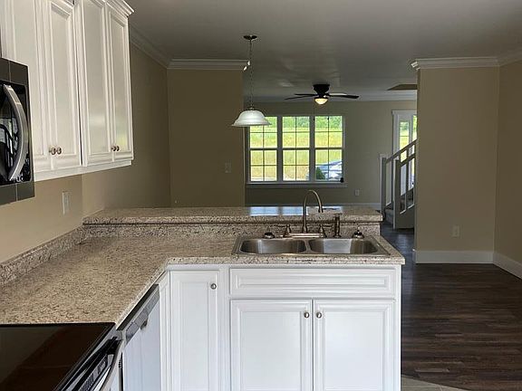 Open floor plan, living room, dining and kitchen, 2 bedrooms on main level and two baths, walk in closets, LVT flooring throughout and ceramic tile in baths & Kitchen. Kitchen features large pantry, white cabinets and stainless steel appliances and french door to private deck. Upstairs great room is 3rd bedroom or media room, lots of space and closets. Stairs and 3 bedroom do have carpet, wonderful view of the mountains. This is a corner unit, professionally landscaped. HOA join fee is $200 and 75. month. 1460 Square feet, 1 car garage !