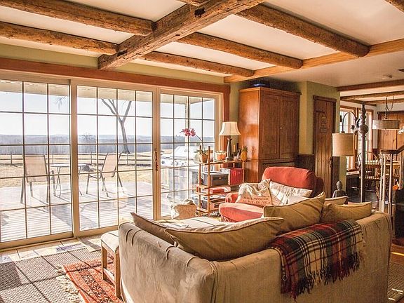 - Liv Dscrp: Fireplace, Deck - Exterior, Slider, Flooring - Wood, Ceiling - Beamed