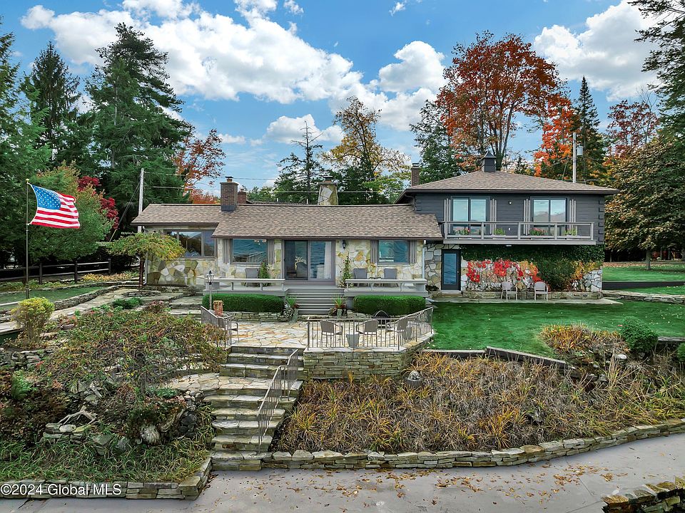 This stunning lakefront home in Forest Bay offers a rare 195 feet of shoreline in a perfectly private setting. Combining rustic charm with modern features, the property includes professionally landscaped grounds, patios, decks, and porches. The year-round residence has three bedrooms and two bathrooms on a 0.44-acre lot. The open great room is ideal for entertaining, featuring a cozy wood fireplace and & large windows showcasing panoramic north-facing views of Lake George & the Adirondack mountains. Enjoy the large private dock & personal boat launch for all of your boating, swimming & fishing needs. This property is truly an ideal way to experience the beauty of lakefront living.