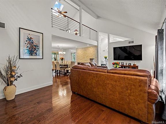 This Contemporary show stopper truly rises above the rest No detail was over looked as this home will have you captivated and day dreaming of your forever home. 3 generous bedrooms with large closets & 2 with private baths. One being a first floor master suite. 2.5 updated lush bathrooms with new vanities with soft close doors, granite, marble flooring, new fixtures, WiFi connectable exhaust vents with speaker & 1 with a walk-in shower w/marble tile walls. 3 grand fireplaces. Real hardwood flooring, doors, handles and trim work throughout 1st and 2nd floors. Interior balcony. Upstairs loft. Custom kitchen with stainless steel wifi connectable smart appliances, double sided stone veneer fireplace and a large breakfast nook. Formal dining room with access to your oversized covered entertaining deck. Lower level with laminate flooring of 15 mm thick panels with insulated underlayment and sliders to a covered patio. New garage openers and water heater Truly a unique home with natural gas and hooked up to city water/sewer. Enjoy nearby shopping, fine dining, nature reserves, outdoor explorations and all that Avon has to offer. Only 22min drive to West Hartford Center. 3min drive to Farmington River & Trail parking (paved trail length is 16.5 miles following Farmington River. 20min drive to Ski Sundown where you can enjoy winter sports. 6min (2.5 mile drive to downtown Unionville, Stop and Shop, restaurants and more...