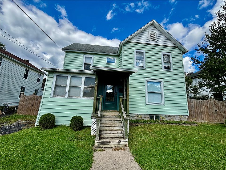 Colonial home located in Owasco school district. in need of a little TLC and some renovations. This home located on the east side of Auburn NY has a large front living room, family room, eat in kitchen, formal dining room, three bedrooms and 1.5 baths. More than enough space. The possibilities are endless. Two enclosed porches are a bonus make great summertime sitting areas. Low Maintenance fenced in yard. It will make a fantastic home when it's finished. Great investment or owner occupy.