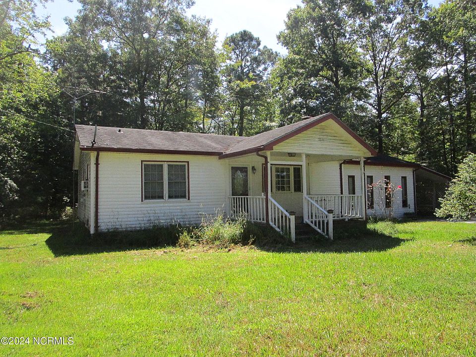 Nestled in the woods of Eure, NC, this 5-acre property features two homes and the essence of country living. The main house includes two bedrooms, two bathrooms, a living room, den, dining room, kitchen, and laundry room. Additionally, there is a single-wide trailer on-site, offering potential as a rental or guest house. Situated less than 30 miles from Suffolk, VA, needs lots of TLC and is being sold as-is, with the seller not responsible for repairs or clearing contents. Title will be taken by Administrator CTA's Deed and sale subject to court approval. Cash only.