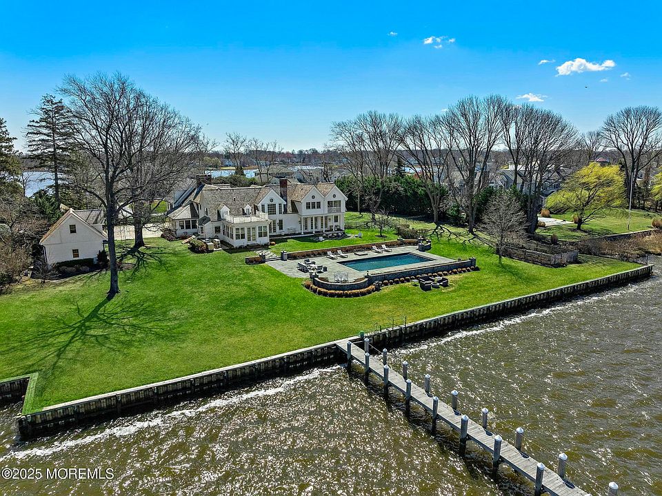 Welcome to this stunning waterfront retreat with breathtaking sunsets. Discover the perfect blend of luxury, sophistication, and waterfront living in this fully renovated 5-bedroom, 5 full bath, and 2 half bath home. Located at the end of a quiet cul-de-sac, this exceptional property sits on 1.77 acres at the highest point of Gooseneck Point Road, offering sweeping views of the Shrewsbury River. With 300 feet of waterfront, a private 129-foot dock, and a boat lift, this home is a boater's paradise. Every detail of this home has been meticulously upgraded, featuring a custom chef's kitchen with high-end appliances and a butler's pantry equipped with a dishwasher, oven, fridge, sink, and nugget ice maker. The primary suite boasts vaulted ceilings, a private balcony, and a spa-like bath with a soaking tub, while a new downstairs guest suite includes a custom en-suite bath. Designed with both elegance and functionality, this home offers a dedicated office, a recreation room with a loft, and a custom bar and study that exude charm and sophistication. The four-seasons sunroom provides breathtaking panoramic water views, while three inviting fireplaces create a welcoming ambiance. The meticulously landscaped grounds create a private, picturesque retreat, featuring lush gardens, mature trees, and a manicured lawn. A detached two-story garage includes a home gym and additional bonus space, while the bluestone front porch and Belgian block driveway lead to an attached three-car garage, providing ample storage and workspace. The heated 20x40 gunite pool with an automatic cover adds to the home's resort-like appeal. Gas lanterns enhance its timeless charm, while a whole-house generator ensures uninterrupted comfort. This fully upgraded waterfront retreat seamlessly blends elegance, modern amenities, and breathtaking natural beauty. Schedule a private tour today!