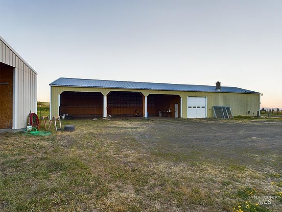 Just a 3-minute drive from Grangeville, this 2-story home with a daylight basement is an ideal country retreat. Featuring 3 bedrooms and 2 bathrooms, the home offers a U-shaped kitchen with efficient appliances, laminate flooring in the living room, a wood-burning stove in the basement, a crafting/workshop room, a large pantry, and main-level laundry. Relax on the large covered, elevated deck, or make use of the oversized attached garage for ample storage and vehicle space. Set on 5 acres of grassy land, this property is perfect for horse lovers, with horse stalls and additional outbuildings. The low-maintenance yard is shaded by trees, providing a peaceful country lifestyle. Additional features include a 47'x30' shop, a 51'x30' 3-bay machine shed, a covered hay shed with tack room, and a loafing shed, offering abundant space for hobbies and storage. Located in Idaho's Camas Prairie region, this home offers access to mountains, rivers, and National Forests.