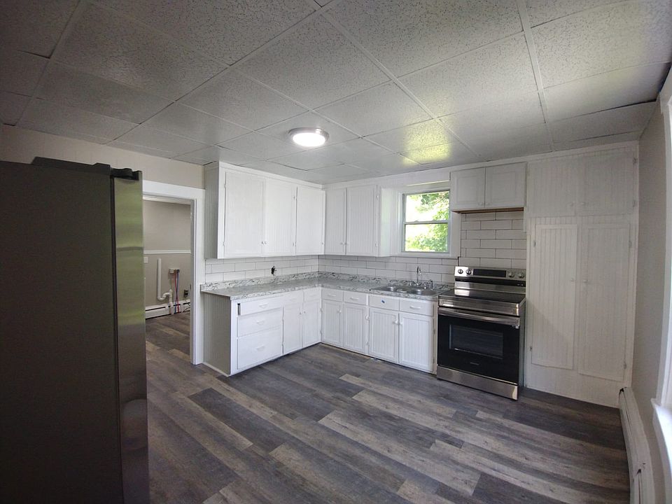 Spacious 3 bedroom townhouse with good size living room, eat-in kitchen full bathroom with laundry in unit. **Freshly painted **New stainless steel appliances **Off street parking **Shared yard space Month to month lease Tenants pay for Electric and Oil Off street parking Owner pays for water and sewer