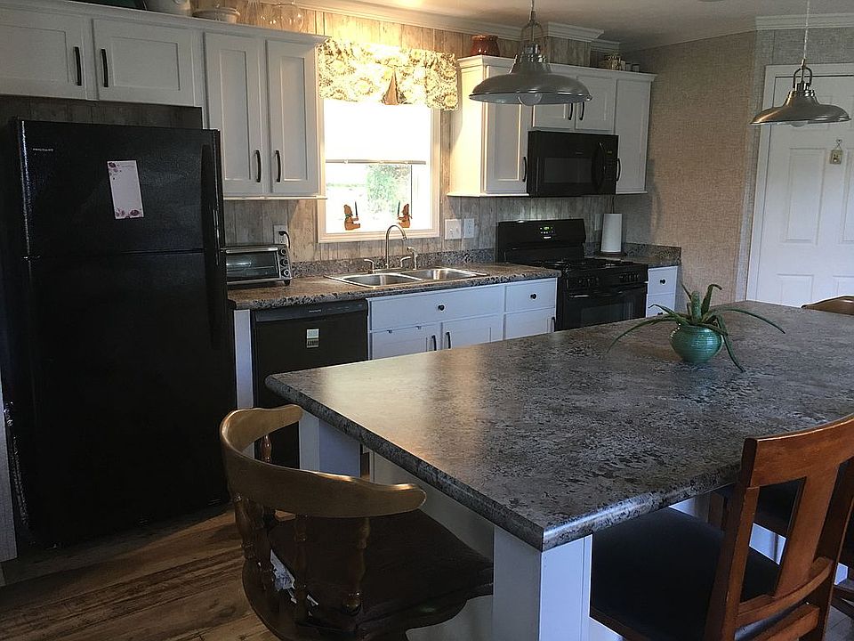 Open kitchen with plenty of cupboard space, large island with enough seating for 6. The laundry room off from the kitchen. The master suite is at one end with walk in closet. Master bath has a large walk in shower. Beautiful floors throughout, carpet in the hall and three bedrooms. Kitchen is open to a well lit living room with a built in entertainment center. Full size windows and doors throughout home. From the living room there is two additional bedrooms with a full bath and back entrance. This new home sets on a HUD approved slab with tie downs. All site work was done to HUD specifications and HUD inspected. This home is Energy Star rated and we added insulated skirting, to keeping heating cost down. The outside offers beautiful views in a quiet neighborhood. This is not a traditional park set up. Only 7 other homes, in a cul-de-sac like lot. Lot rent is only $260 a month with water and sewer included. Less than a mile to Norwich University in Northfield Vermont. 7’X10’ Rubbermaid storage shed is set up and ready for your storage needs. This home has been lived in for 3 months. All warranties transfer to new owners. Cash and pre-approved buyers are encouraged. $27,500 in down Payment assistance for qualified buyers. We have done the hard work. Take advantage of this turn key home. Asking $142,500. Message me to schedule a viewing time. The town has not updated assessment value from new home