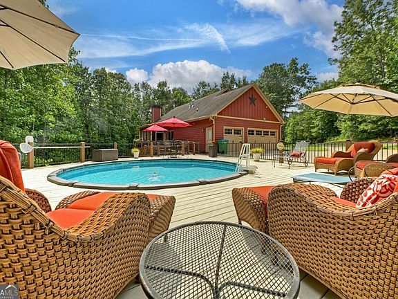 This beautiful custom home rests on 3 PRIVATE acres in Hampton Farms-just minutes to Downtown Jasper, Hwy 515, schools, shopping, dining, and local vineyards. Offering main-level living with upgrades throughout, it welcomes you with a rocking chair front porch and a warm, inviting foyer. The chef's kitchen features custom cabinetry, stainless steel appliances, a walk-in pantry, breakfast area, and NEW updates including gas stove, countertops, backsplash, lighting, sink/faucet, and disposal. A formal dining room provides the perfect setting for entertaining, while the cozy living room opens to a screened porch that leads to the pool deck with saltwater pool. The oversized primary suite showcases a double tray ceiling, dual vanities, tiled shower, and its own private deck overlooking the backyard. The fully finished terrace level is an entertainer's dream with a spacious family/recreation room, stacked-stone fireplace, pub-style built-in bar, full kitchen, full bath, 2nd laundry, workshop, generous storage, and other rooms providing an option for additional bedrooms; there's also a stair lift providing easy access to create the ideal "In-Law Suite". Terrace level includes an outdoor covered area for enjoying drinks and wildlife viewing. Additional highlights include a 3-car GARAGE conveniently located off the kitchen, separate laundry room, gutter guards, public utilities including water, natural gas, and high-speed internet, plus NO HOA fees. You will love the new covered RV/Boat barn that also includes a workshop. Furnishings are NEGOTIABLE (on a separate bill of sale). You don't want to miss this rare opportunity in a prime location just 8 minutes to Jasper and the new Publix, 20 minutes to Canton or Ellijay, and close to Canoe, Fainting Goat & Chateau Meichtry vineyards!
