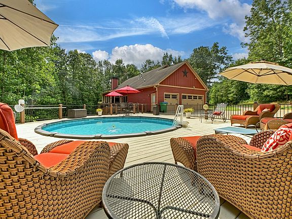 This beautiful custom home rests on 3 PRIVATE acres in Hampton Farms—just minutes to Downtown Jasper, Hwy 515, schools, shopping, dining, and local vineyards. Offering main-level living with upgrades throughout, it welcomes you with a rocking chair front porch and a warm, inviting foyer. The chef's kitchen features custom cabinetry, stainless steel appliances, a walk-in pantry, breakfast area, and NEW updates including gas stove, countertops, backsplash, lighting, sink/faucet, and disposal. A formal dining room provides the perfect setting for entertaining, while the cozy living room opens to a screened porch that leads to the pool deck with saltwater pool. The oversized primary suite showcases a double tray ceiling, dual vanities, tiled shower, and its own private deck overlooking the backyard. The fully finished terrace level is an entertainer's dream with a spacious family/recreation room, stacked-stone fireplace, pub-style built-in bar, full kitchen, full bath, 2nd laundry, workshop, generous storage, and other rooms providing an option for additional bedrooms; there's also a stair lift providing easy access to create the ideal "In-Law Suite". Terrace level includes an outdoor covered area for enjoying drinks and wildlife viewing. Additional highlights include a 3-car GARAGE conveniently located off the kitchen, separate laundry room, gutter guards, public utilities including water, natural gas, and high-speed internet, plus NO HOA fees. You will love the new covered RV/Boat barn that also includes a workshop. Furnishings are NEGOTIABLE (on a separate bill of sale). You don't want to miss this rare opportunity in a prime location just 8 minutes to Jasper and the new Publix, 20 minutes to Canton or Ellijay, and close to Canoe, Fainting Goat & Chateau Meichtry vineyards!