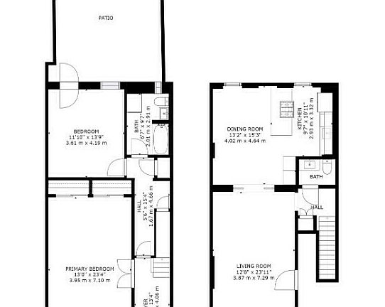 This enormous two bedroom duplex apartment has just undergone a tasteful renovation, however some important aspects were kept. This apartment is a floor-through and comprises both the first floor, as well as the ground floor, in a low-rise walk-up building. There are two entrances to this apartment, including a private entrance into the building on the ground floor. The apartment features an approximately 350sf private backyard patio, with a lighting system already built out. There is new hardwood flooring, as well as dimmable lighting, throughout. The kitchen takes up part of a rather large dining room with over-sized windows overlooking the backyard patio. There are new high-end stainless steel appliances including dishwasher, range and large refrigerator, light marble counter-tops, and subway tile back-splash. There is a large island where the stove top is located, and additional counter-space, as well as an additional kitchen cupboard for storage. There is drop lighting for the island, back-splash lighting, as well as recessed lighting overhead. Between the dining and living rooms are retractable pocket doors, which feature an amber tiffany glass inlay. The living room is quite large and bright with windows facing the front of the building, and an entrance into the building with access to the front door of the building. This first floor level features high ceilings, crown moldings, and built in ceiling fans in both the living and dining rooms. Adjacent to the living room is a marble half bath with tasteful wallpaper and spacious vanity, and drop lighting fixture. Just across from the bath is a coat closet. Descend the stairs to the ground floor level, and there's the private entrance to the front of the building. The massive primary bedroom is the size of a living room, and features both recessed lighting, two lighting fixtures, and two large closets. The spacious second bedroom has a new lighting fixture, and features the entrance to the private backyard patio. There is a large marble bath, with full sized tub, which includes both stationary and manual shower heads. There is an LED lighted vanity mirror, as well as full sized washer and dryer. The linen closet is just outside of the bath. The apartment is centrally located in Fort Greene, very close to Barclays Center and Downtown Brooklyn, as well as a lot of public transportation. Please contact me right away to arrange a viewing!