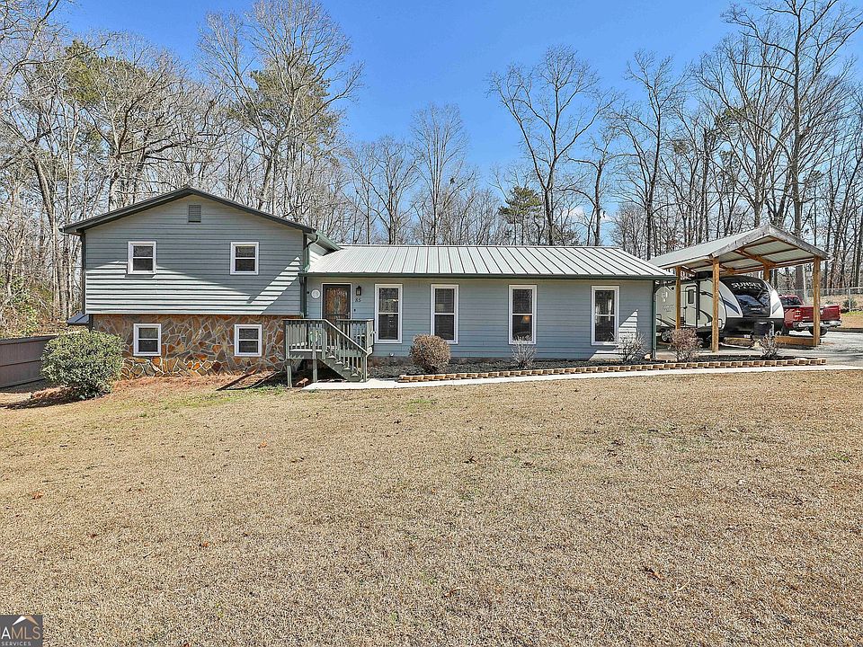 MOVE IN READY! MANY UPGRADES *NO HOA! This 3 Bedroom 2 Bath (plus Bonus room ) property has been meticulously maintained throughout. Spacious Open concept Floor Plan allows for lots of room for entertaining! Stainless appliances Refrigerator included. Washer/Dryer Two large family rooms! New HVAC 2023, New Metal roof 2021. Newly added Cabinets, Solid surface countertops. Windows replaced by Window world. Nothing left to do! Attached Large Multi purpose workshop / handy mans dream / craft room etc. Spacious Private backyard Oasis awaits you with custom built firepit to gather around and enjoy family /Friends. New large deck 10x 16 Shed stays too_ Carport designed for RV storage. This is a must see to appreciate . Conveniently located to Downtown Newnan. Easy access to I85/airport