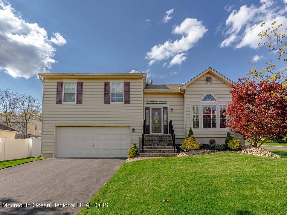 lot. Enter this freshly painted home into the 2-story family room with new vinyl flooring and large picture windows. Downstairs from there features an additional living room with new floors, a bedroom and full bathroom as well as access to the backyard. Upstairs you'll find another 3 bedrooms — including a master bedroom with vaulted ceiling, walk-in closet and updated bathroom — 2 full bathrooms, kitchen and dining room. This bright and clean home features 2 NEW bathrooms, NEW roof, NEW sliding door, NEWER furnace, sprinkler system and more! Enjoy summer in your private backyard on the newer deck or swimming in the pool. Close to Rt 9