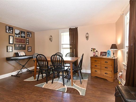 Well maintained bungalow on a beautiful lot. This 2 bedroom 1 bath home is in move-in ready condition. You can enjoy time together in the spacious, open living and dining areas. Very large kitchen with lots of cabinets and counter space. Kitchen and bathroom have tile floors. Bedrooms are carpeted. The second bedroom is currently being used as a music room. Very nice laminate flooring, Oil Furnace and ac window unit. Relax, enjoy coffee or dinners on the covered front porch. Home Warranty