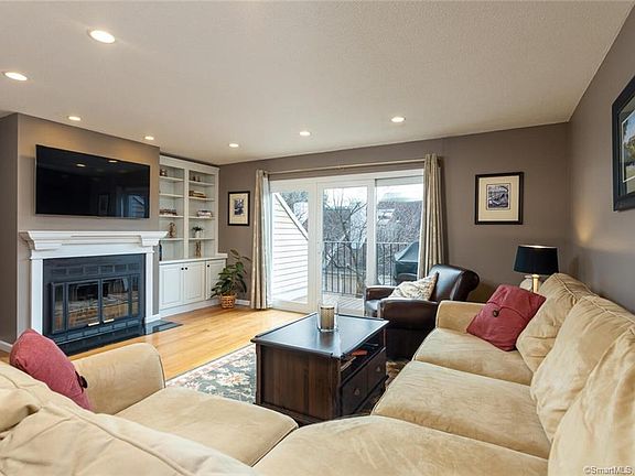 Welcome home to desirable Forest Mews! Nicely updated townhome offers bright living room/dining area with marble fireplace, custom mantle, hardwood floors, custom built-ins & sliders to balcony with city views. Kitchen boasts s/s appliances & granite counters. Upper level includes new carpeting, master bedroom w/2 custom walk-in closets, new bath, 2nd bedroom w/walk-n closet & updated hall full bath. Recessed lighting throughout. Attic provides lots of storage. Garage parking space plus additional 1 outdoor space. New HVAC. Low common charges, $289/month. Private in-town location and yet only steps to vibrant downtown. Move right in!