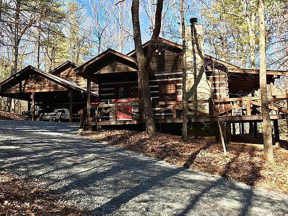 3.5 % comission for buyer's agent. Fully furnished beautiful chink log cabin in desirable Heatherwood. Carport with storage room and upper deck with seasonal view and screened in porch with hot tub. Heart of Toccoa River basin. Minutes to hike, bike, canoe, kayak, fish, boat. Granite counter in kitchen & bath. Stainless appliances. Rocking chair porch with seasonal view of Springer Mountain. Wood burning stone fireplace in living room. Exposed beams. Well maintained. Please text or call for information. Rents very well. No walk ups please.