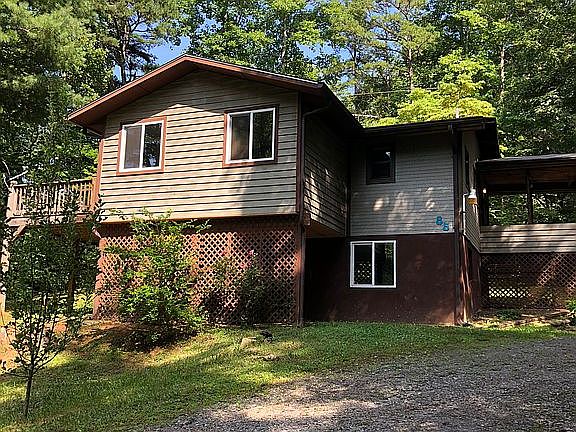 Great full time home or mountain getaway home! Tucked in the woods yet less than 1 min off of the paved road. Great subdivision with access to a pond. This home has been remodeled and has a lot to offer. Open living/kitchen and dining room. Oversized kitchen which is great for entertaining. Large living room with wood burning fireplace that opens up to large deck. Master bedroom is very large. Downstairs is large bedroom with full bath, laundry area and bonus room that could be used as a den, game room or extra sleeping space. Nice yard space outside. Private yet you have neighbors. House does get Frontier DSL internet. This is a great house with motivated sellers! No rentals or owner financing.