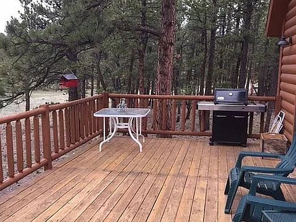 PRICE REDUCED! THIS COLORADO CABIN IN THE WOODS has everything you have dreamed of for that get away cabin or out of the city full time living. 3 BDR 2 BATH. Master on the main level & 2 bedrooms and full bath upstairs with lovely large landing area to relax and get that peek of the kitchen and dining area opens into living room with cozy gas log fireplace and plenty of natural light from cathedral ceiling & large windows! 2 Acres of trees for that private feel. Log siding and Metal Roof.