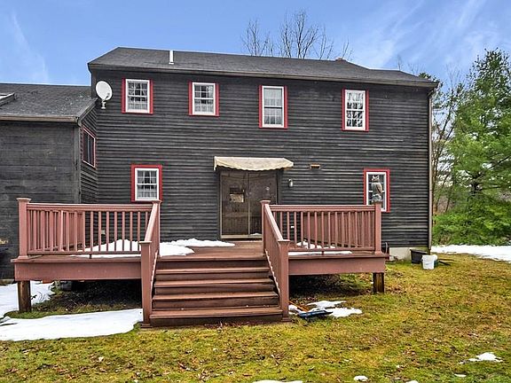 **CANCELED OPEN HOUSE SUNDAY DEC 22nd** Lots to love about this solid 3 bedroom colonial home located on a scenic country road! Need space for your growing family? This home has over 1,700 sq ft including a flowing main level floor plan consisting of a spacious kitchen with white cabinetry plus pantry closet, formal dining room, and a large family room with wood burning fireplace. Second level offers three good sized bedrooms including a master en suite. Sited on 1 acre of level land, the home features a back deck to enjoy the private, wooded view. Huge bonus is the 2-story attached 2-car garage offering fantastic storage or easy potential to finish second level for additional living space. The property is ideally located, close to sought after schools, sports fields, rail trail and route 190 access.