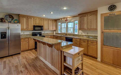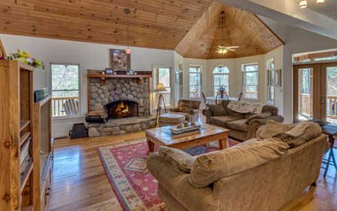 True Craftsman Quality Abounds...Spacious & Stunning 3 bedroom home is perched on gentle wooded tract with lush, landscaped yard...complete with firepit & flower gardens...drywall & wood interior boasts soaring ceiling in flowing great room, dining, kitchen areas, light & airy ambiance is warmed by massive stone fireplace, custom kitchen w/ large pantry, granite counters & stainless appliances, master suite features walk in closet & private bath with jacuzzi tub, walk in shower & double vanity, utility/laundry room + outside storage room from entry porch, abundant porches & decks, sprawling upstairs has two guestrooms w/ shared full bath + oversize loft..perfect for office, den or sleeping area, full ready to finish terrace level for expansion also boasts drive under garage & walk out patio, unique & stunning outdoor pavilion features the ulitimate in outdoor living...exposed beams & rustic flair...shoot hoops or host a party, "loft" style studio shines with trap doors to workshop below...this property has it all, and did we mention the privacy, close to town, lake and river location....& the mountain views - custom upgrades throughout make this a winner! 05/05/15