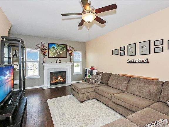 USDA QUALIFIED...100% FINANCING! Beautifully situated on a SMALL CUL-DE-SAC, of just 6 homes, on a 13939 SQ FT, LEVEL LOT, FULLY FENCED w/WHITE VINYL, not backing to any other homes, w/in the highly sought after STONE MEADOWS COMMUNITY that offers a club house, athletic fields, walking trails, & 2 POOLS...JUST IN TIME FOR SUMMER! 9FT Ceilings on the 1ST Floor! 2ND FLOOR LAUNDRY! NEWER WOOD FLOORING graces the spacious family room complimented w/a 36 INCH DIRECT VENT GAS FIREPLACE! Kitchen offers 42IN UPGRADED BIRCH CABINETS, BLACK ON BLACK APPLIANCES, CENTER ISLAND w/a OVERHANG, PANTRY, & BREAKFAST ROOM that opens to the 12x12 NEWER DECK w/STAIRS that leads to the 24x12 STAMPED CONCRETE PATIO! VAULTED MASTER SUITE w/a WALK-IN CLOSET & LUXURY MASTER BATH w/SEPARATE TUB/SHOWER & DOUBLE BOWL VANITY! Neutral decor & WHITE 6 PANEL DOORS throughout! 15x5 COVERED PORCH! VINYL SIDING! ENCLOSED SOFFITS/FASCIA! Close to everything, PLUS just 4 MILES TO EITHER HWY 364/PAGE EXT, I70, &/or I64/40