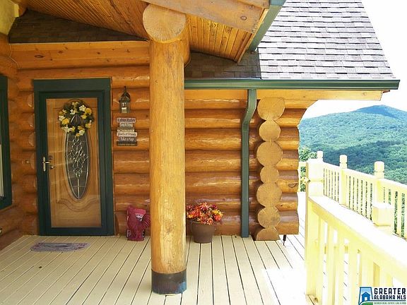 This gorgeous 3BR, 2.5 Bath, custom log home is in a gated community nestled on a mountain ridge that overlooks a view that rivals the great, Smokey Mountains. Inside you will find vaulted ceilings, peeled log stairs, joist & support beams. The large, main level MB/MBath features W/I closet, garden tub, sep shower, his & her vanity. Just off the master is a private covered porch perfect for your morning coffee or winding down in the evening. There is beautiful hardwood flooring throughout the downstairs area with your beautiful kitchen offering great cabinetry, beautiful solid countertops with all appliance to remain including the refrigerator. Two other bedrooms are upstairs & both are very large with extra storage & share a full bath. This home also features two central HVAC units the upstairs unit is new and the downstairs unit was replaced 1.5 years ago. There is a 17K generator that runs the entire home. You can enjoy the views from multiple areas of your wrap around porch.