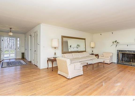 Spacious & sunny 4-bedroom home w/walls of windows & open, flexible plan. Beautifully sited on nearly 3 acres between 2 Land Trusts only 4 min. to village/train. Custom-built features found in much larger homes make just-right combination for today's living. Welcoming foyer expands into LR w/marble fpl & crown moldings. Formal DR w/marble fpl & French door to terrace. Huge kitchen opens to FR, DR, breakfast rm, laundry & pantry. Master suite w/4 closets & door to terrace, plus 3 add'l large BRS. One floor living at its best in 2,658 finished SF. Enjoy exercise, studio, play, storage in add'l 5,000sf in unfinished walk-up attic & LL. Town-approved 6-BR plan ready to customize even more space for upside potential. Best all-around value today!