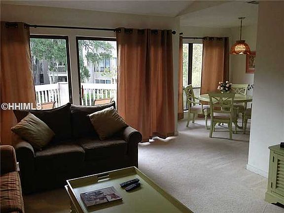 Top floor unit, light & bright with vaulted ceiling; enjoys tranquil lagoon view from balcony, dining & living room. Updated bathroom, newer furniture, king-sized bed, pull-out sofa. Wonderful onsite pool and tennis courts for owner & guest enjoyment. Pet friendly complex. Great location next to Sea Pines Center plus easy bike ride to Harbourtown or Sea Pines' beaches! (ZT)