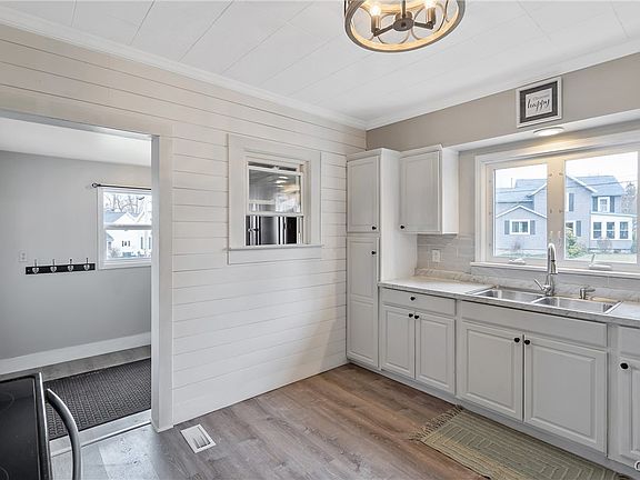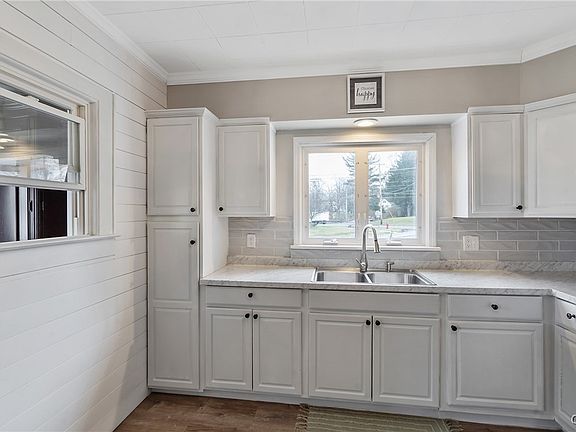 This home has many updates! The first floor has a spacious open floor plan! The staircase was opened up to the large living room and dining area with a new wrought iron staircase! Two of the porches have been enclosed and square footage added. One is now a room that could be a bedroom/guest room, office or anything that you want it to be! The other porch has been turned into a den/office or sitting room and has a electric fireplace, ceiling fan and has a slider out to the yard. A bright kitchen is off the spacious mudroom and has new backsplash, appliances, shiplap wall and new lighting. The dining area could hold a large table or open to what could be a sitting area. Off this area is a half bath with new flooring, wainscotting and crown molding. You will love the spacious living room which has a new tongue and groove ceiling, crown molding, shiplap wall, ceiling fan and carpeting. Upstairs you will find a great open area that could have multiple purposes! You could make it an office or stting area. There is even an open closet tht just needs a door. Off this are 3 spacious bedrooms, one with a walk-in closet, and a completely remodeled full bath with linen closet! This house has also been completely repainted with all new flooring and light fixtures! Step outside and find a new garage, extended circular driveway, fence, pavilion and stampcrete patio, in addition to a new roof! Located just blocks from Oswego River and Main St where there are many musical events in the park area.