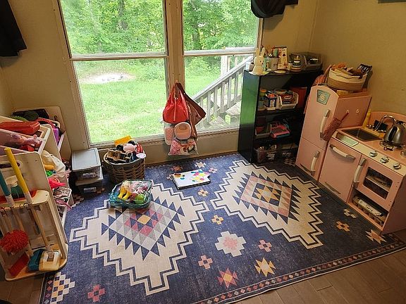 * play area is set up off kitchen and is perfect for a dining area as well*