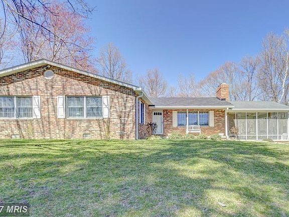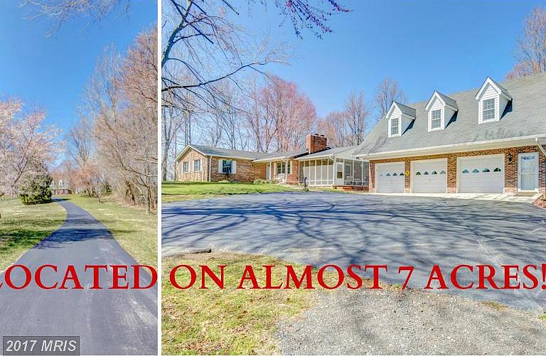 Brick Rambler, 3 BR,3 bath, 3 car detached garage/ 2 bedroom apt over garage with storage in basement, in-ground gunite heated pool all on 6.95 acres, Screened-in porch, patios, custom made Maple Kitchen Cabinets, baths updated in 2000, Walk in Closet, Whirlpool tub, geothermal heat/air, 2 sep. septic's, Shed, 500 gal. propane tank & pool furniture convey. property is in Forest Conservation.