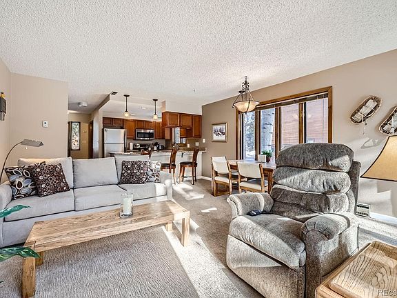 ON THE RIVER 1 BLOCK TO FRISCO MAIN STREET! 20 WEEK OWNERSHIP. End unit with a nice SOUTH FACING deck overlooking Ten Mile Creek! Very desirable neighborhood, hardly ever on the market. Well cared for, complex and home. 2 bedrooms, 2 baths, fully furnished townhome with spacious great room, fireplace, dining area, and open kitchen. Primary bedroom with private deck and extra vanity and sink. Large deck from the great room, with amazing river and mountain views. Perfect for entertaining! Mature trees, quiet location, but only minutes to all the activities, festivals, marina, and restaurants. Walk to town, bus stop, bike and hiking trails. $975/Quarter dues include all expenses. Well established Partnership for over 20 years with two other owners. Dogs allowed. Hurry, the first week is December 24th! Enjoy the mountains with a third of the cost. First showings 12/24 - 12/30.