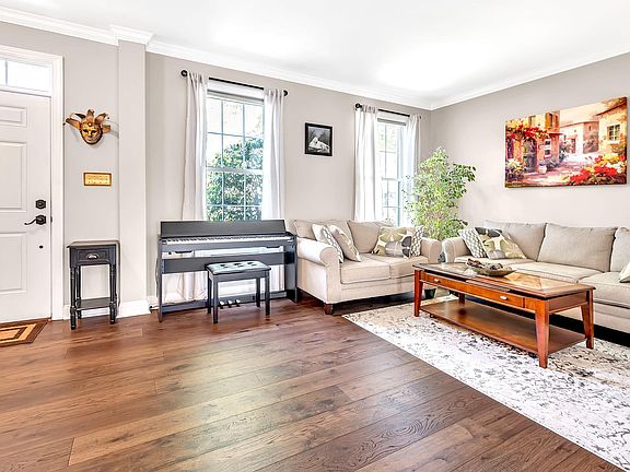 A perfect townhome in Robbinsville's Town Center community awaits! This renovated 3 bedroom, 2.5 bath brick-front townhome features fabulous curb appeal, a premium lot just a few doors down from North Park and an open floor plan. Entering the home you will encounter hardwood floors that extend throughout the first floor. The elegant living and dining rooms are both enhanced by crown molding and neutral paint colors. Towards the back of the home, the fully remodeled kitchen has bright white cabinets that stretch to the ceiling, gorgeous quartz countertops, an oversized waterfall island, stainless steel appliances, two pantries and a bright eat-in area. The family room is adjacent to the kitchen and has a fireplace, a built-in entertainment unit, three beautiful tall windows, recessed lights and crown molding. The main floor also has a renovated stylish half bath.    The second floor primary bedroom creates a relaxing retreat with desirable details like chair rail,  crown molding, recessed lights, a ceiling fan, and a generous walk-in closet with custom organizers and an attached primary bath. There are two additional bedrooms on the second floor with ceiling fans and ample closet space, a main hall bath and a laundry area!   The finished basement will delight you with its main living area which offers recessed lighting, baseboard heat and multiple windows to let in the natural light! In addition to the living area, you will be pleasantly surprised by the soundproof theater room!    The backyard has a newer expansive paver patio, new composite material stairs, beautiful landscaping and lots of space to entertain. There is also an oversized one-car garage and a parking area for an additional vehicle.   This move-in ready home has been meticulously maintained and is ready for its new owners!  Become a part of this vibrant community and enjoy close proximity to playgrounds, parks, lakes, shopping, and great restaurants. All with NO ASSOCIATION FEE!  This home is very close to the Hamilton train station, 195, 295, 95 and Route 130. Getting to Princeton is a quick 15 minutes, and Trenton airport is only 20 minutes away! This home is in the highly rated Robbinsville school district! This one is a beauty and will not last!!  ** Sellers would prefer an August 1 closing date.**