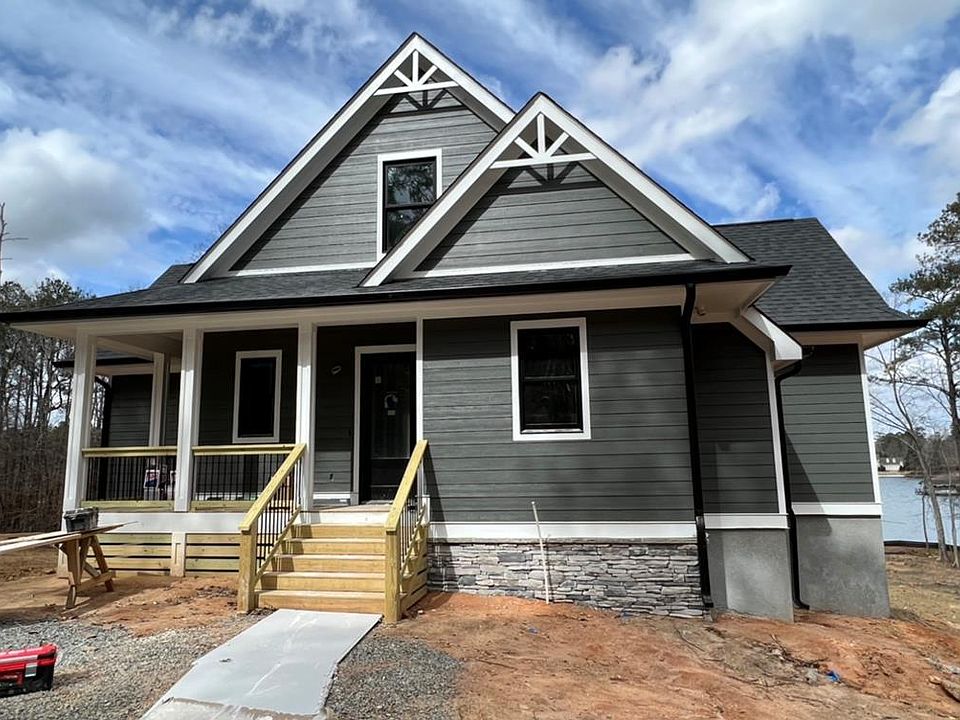 What More Can you Want in a Lake House??? This 5Br Cottage is nestled on a private 7.43 acres on Lake Sinclair with over 260 foot of water frontage just a few minute ride from downtown Milledgeville. Mariner's Cove provides some of the best water on Lake Sinclair. Walk in the front door to an open floor plan with great views from most all of the rooms. Did I mention all of the natural light through the Windsor windows? Main level offers spacious kitchen, custom cabinets, and quartz countertops. The living room offers spacious entertaining area with shiplap fireplace. Enjoy the morning and evening lake views off of three sides of back decking. The Master suite is on the main level and offers walk in closet, double sinks, tile shower and quartz countertops.. Two bedrooms and one bath is up stairs. The fully finished basement offer 2 bedrooms and a bath with another living/game or entertaining space. This type of privacy is not often found on Lake Sinclair. The basement back porch offers two great locations for hot tub and/or lake equipment. Great storage area inside basement.