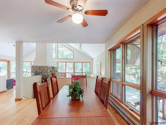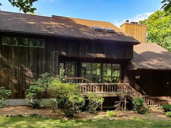 A long, tree-lined driveway leads you to this architect-designed country home surrounded by mature landscaping, a pond, and a glimpse of a house that sits so easily in this particular setting. The heart of the home is a massive double-sided, double-height fireplace that centers the sunken living room, the dining room with its wall of windows, and the kitchen and bonus space that all flow so easily between each other and the sliders to the decking outside. If you haven't already lost your heart on the drive in, you certainly will at the first glimpse of this incredible living space! Ideal for anyone newly working at home with the separate office with its own entrance in the basement (there is over 1,000 sq ft of finished basement that's not included in the square footage!) - plus the four bedrooms, 3 full and 2 half baths will give you plenty of options to spread out! Just a quick drive to the Patterson MetroNorth station, this is an occasional commuter's or weekender's dream home.