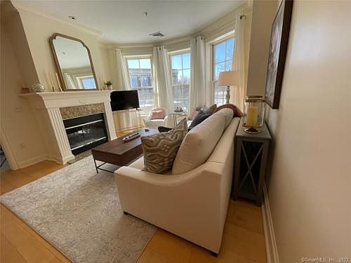 Upscale chic 1br with 1 bath- gas fp in living room, pretty garden view. Located in West Hartford Blue Back neighborhood. One Reserved Parking space in garage, charming common areas include library and terrace. 24 hr secure building. Showings start 11/17/22. Use Rentspree for application and credit check.