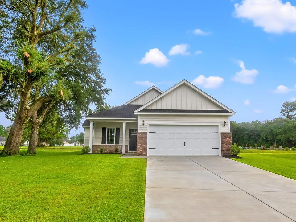 This Move In Ready Custom floor plan has it all! Open concept home with a modern open design on a spacious lot. This floor plan features lots of windows and 9ft. ceilings allowing natural light to flow in. The living and dining area are adjacent to the kitchen which makes entertaining effortless. This kitchen includes granite countertops, Aristokraft™ Shaker style cabinets, and stainless appliances. Come see all the insightful features designed with you and your lifestyle in mind including a split bedroom layout, beautiful yet durable waterproof laminate flooring in the main living areas and carpet in the bedrooms. Your primary suite, separate from the other bedrooms, includes a large shower, a double vanity, walk-in closet, plus a separate linen closet for additional storage. Enjoy the coastal breezes and a spectacular pond view on your covered back porch. Peru Plantation is a premier neighborhood and located in historic Georgetown, SC. Peru Plantation is on 173 acres of absolutely stunning grounds with rich history and majestic oak trees. Building lifestyles for over 40 years, we remain the premier home builder along the Grand Strand. We’re proud to be the 2021, 2022, 2023, and 2024 winners of both WMBF News' and The Sun News Best Home Builder award, 2023 and 2024 winners of the Myrtle Beach Herald's Best Residential Real Estate Developer award, and 2024 winners of The Horry Independent’s Best Residential Real Estate Developer and Best New Home Builder award. We began and we remain in the Grand Strand, and we want you to experience the local pride we build today and every day in Horry and Georgetown Counties. We are dedicated to excellent craftsmanship and customer service and each home is built with pride. Each home here in Peru Plantation will be adorned with low country charming front porches, brick accents, fully finished and painted two car garages and back covered porches that will be great for entertaining. Take comfort in one of our newly constructed homes that has a reputation for quality and value. Whether you are a first-time home buyer or looking for your next home, we are excited to welcome you home at Peru Plantation!