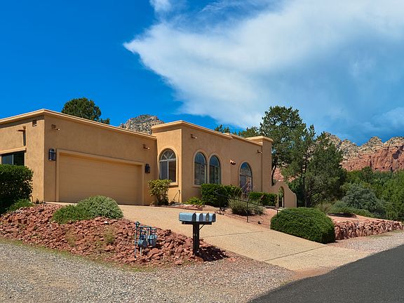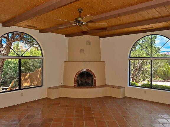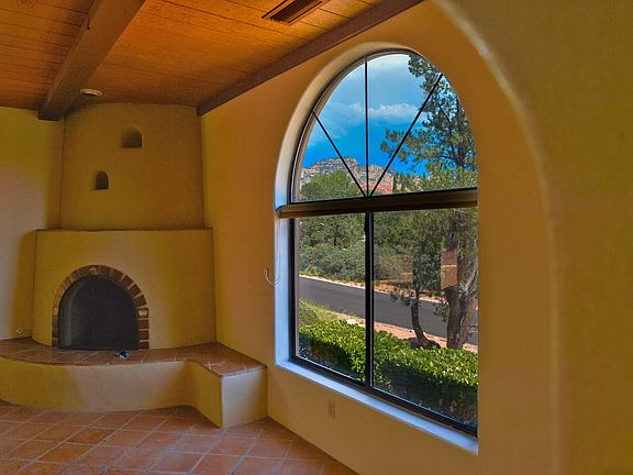 Some would say I am the definition of Charm for an older Sedona Home -''The power or quality of giving delight or arousing admiration''. Countless views from my Living, Dining, and Master Bedroom. Arched Hallways, Half Moon Windows and a Side Courtyard adorn me. Perfect to watch the sun turn Sedonas red rocks pink, with the night moon to follow. My Living Room is complimented by wood beamed ceilings and an adobe beehive wood burning fireplace etched with detailed tiling. Saltillo Mexican Tile Floors, New Carpet and Fresh Paint grace my interior. Office or 3rd Bedroom (with an outside entrance) lead to a retro dark room that could be revitalized into a small kitchen or bath. At my peak I was a Gem, and with some shine to my kitchen and baths I will sparkle like a diamond.