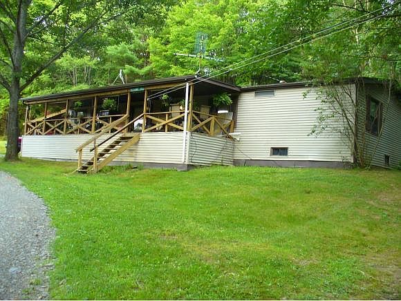 Charming double-wide with open floor plan on 6+ secluded acres just 20 minutes from downtown Binghamton. Both bathrooms remodeled, large 10 x 40 front porch, 2 car detached garage and additional carport.
