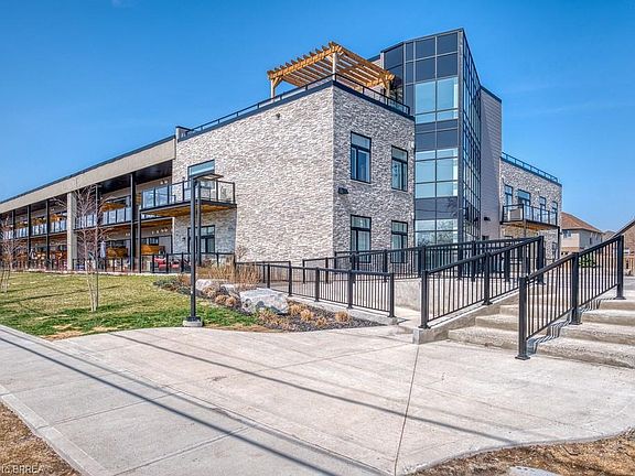 Welcome to The Lofts - arguably Brantford's most sought after modern condo complex! Exceptional turn-key living in this 2 Bed, 1 Bath unit with premium kitchen cabinetry, granite surfaces, pot Lights, 8' doorways, In-Suite Laundry - the list goes on! Bright modern tones throughout coupled with 12 foot ceilings and large windows create an open airy spacious feel bathed in natural light. A 'Big City' vibe with floor to ceiling windows, a large, private enclosed patio (19.2" x 5'4"), an amazing rooftop patio (common area) for entertaining - all this nestled in a desirable mature neighbourhood within walking distance to a historical area rich with character filled heritage homes, a network of walking/riding nature trails along the Grand River, parks, shopping, schools, amazing locally owned cafe's & casual fine dining eateries... this condo and its location represent a wonderful offering! Your own private parking spot can be seen from the balcony of the condo. Party/Entertainment facilities available for entertaining!