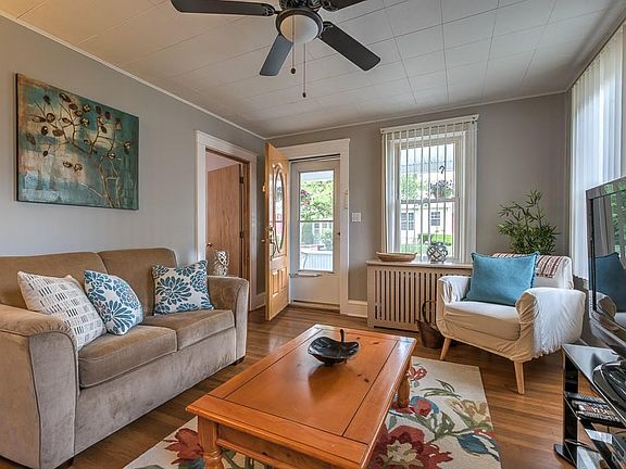 Spacious, 3 bedroom, 2 bathroom dormered cape, with detached one car garage, located in Riverside. The interior has been repainted which shows light and bright. There is a first floor bedroom and main bathroom, with tub and shower. There are two more large bedrooms with wood flooring, and another bathroom upstairs. Furnace is new. Kitchen is open to Dining Area. Cabinets have been painted with updated hardware. The Family Room is lovely, with lots of big windows which lets in plenty of natural light. There is also a separate entrance from the side deck to the upstairs living space. Flex space for sure. Siding, replacement windows, and roof have been done over ten years. Basement windows are newer. There is plenty of space in the basement for laundry, utility and storage. There is a front porch and a back deck for your relaxation pleasure. Yard is inviting, private and fenced. Property has amazing curb appeal. Great neighborhood with bike path nearby. Easy highway access. Happy to show you your new home