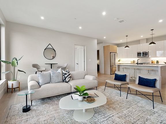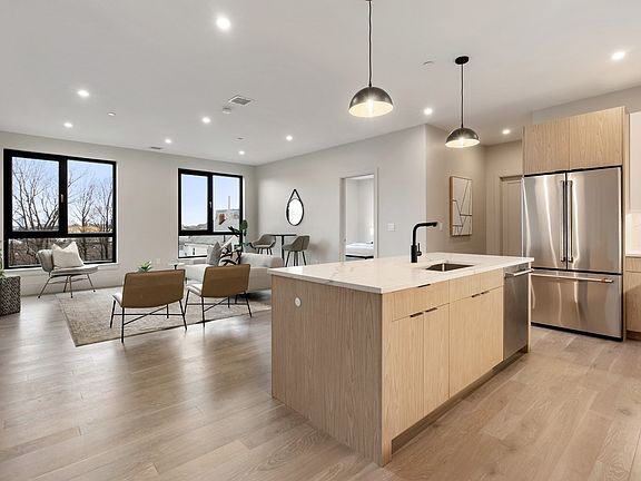 Two bedroom + study floor plan at the NEW RiverBend Condos. Nestled on the bend of the picturesque Neponset River with direct views of the Boston Skyline these homes offer a sophisticated modern minimalist finish style with dual toned white and oak kitchen cabinets by Metropolitan, Quartz counters & back splash and oak Kahrs flooring. The spacious and bright bedrooms provide ample closet space and the primary bathrooms are appointed with a dual quartz-topped vanities, gorgeous penny tiled floors and herringbone tiled shower walls with glass enclosures. In-unit laundry, additional storage and TWO garage parking spaces complete the package. The RiverBend offers an impressive suite of amenities, including an elevator, on-site gym, common lounge, common roof deck, garage parking & a pet friendly outdoor area. Whether you enjoy a run along the historic RiverWalk, sipping rooftop cocktails with friends or shopping along Hancock Street, your best life is at your fingertips!