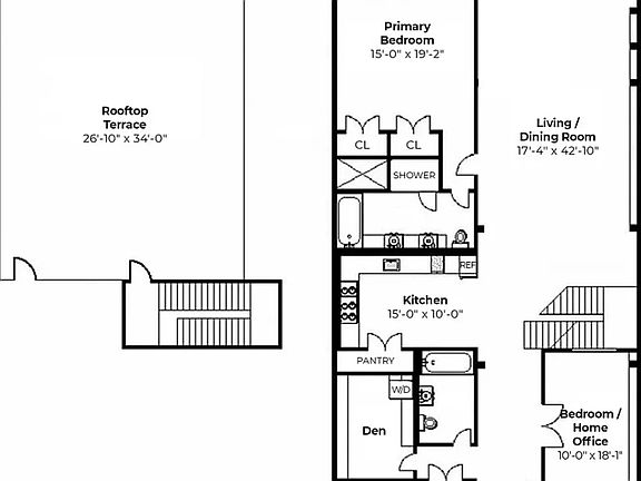 Exposed brick accent wallExpansive landscaped rooftop terraceOriginal exposed timber beamsSpacious en-suite bathroomEat-in peninsulaDual closetsPremium stainless steel appliances