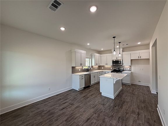 This is a brand new layout in Summerfield Subdivision with 3 Bedrooms, 2 full baths and a 2 car garage. Living Areas are open but are defined spaces perfect for entertaining. The Kitchen has a large island plus stainless steel appliances including a gas range and a vented microwave. Large Living room with a vaulted ceiling and a gas log fireplace. The Primary Suite has a large bathroom with 2 separate vanities, and a fully tiled shower. The laundry room is connected to the primary suite which is a great feature. Trendy exterior finish featuring a combination of brick and concrete siding. Walking distance to Creekside Park which features a walking trail, picnic tables & benches, large playgrounds, basketball courts, tennis/pickleball courts, a ninja course, disc golf course & a pavilion. Blinds, gutters & a full fence are also included.