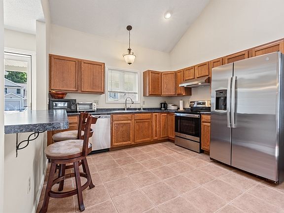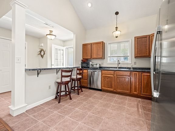 Welcome to 85 N Main St Unit 12 in Belchertown, MA! This beautiful unit within a 55+ community features an open floor plan with high ceilings, creating a spacious and airy ambiance. The kitchen is equipped with modern appliances, including a refrigerator, range, dishwasher, and range hood, all just one year old. A convenient breakfast bar connects the kitchen to the living area, perfect for casual dining and entertaining. The living room seamlessly flows from the kitchen, making it ideal for gatherings and relaxation. Natural light floods the space, enhancing the welcoming atmosphere. Step outside to the backyard, where you'll find a charming patio, perfect for outdoor dining and enjoying the fresh air. The well-maintained yard offers ample space for activities and gardening. Additionally, the garage door was replaced in 2023, providing added convenience and peace of mind. Don’t miss the chance to make this wonderful condo your own!