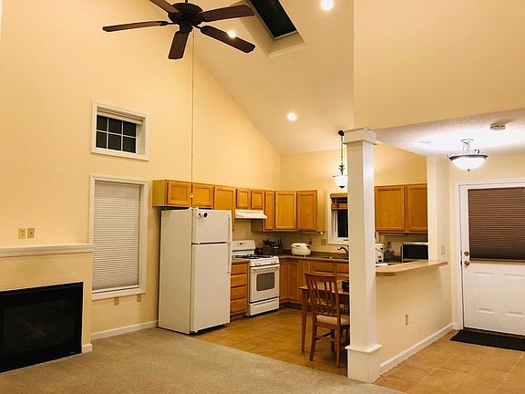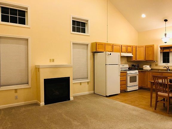 Ready to move in! Retirement community age 55+ Lovely townhouse condo with soaring ceiling, gas fireplace, Transom windows and open floor plan. Spacious 2 bed, or 2 home office rooms (one can be guest room). 2 full baths offer so much great space! Fairly updated propane furnace and central air. One car garage and two parking spaces. Located in the center of Belchertown. Walk to shops, town common, and public transportation and post office. 5 minutes to shopping plaza, CVS and Stop and Shop.